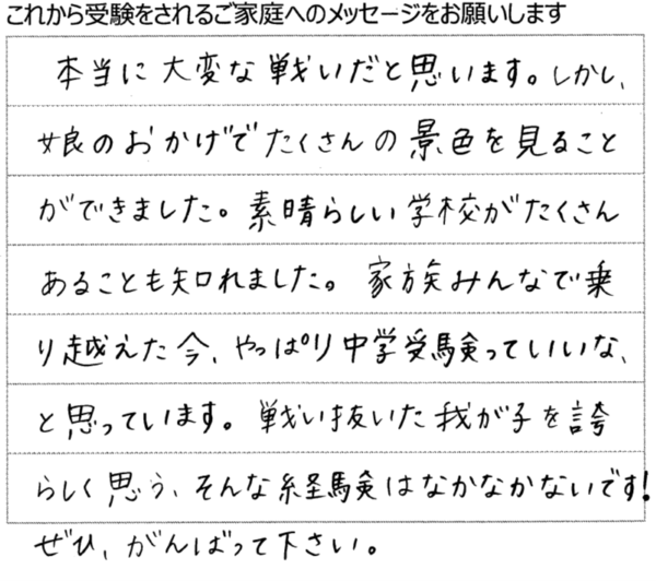 まずは、受験を終えられたご家族からのメッセージです。