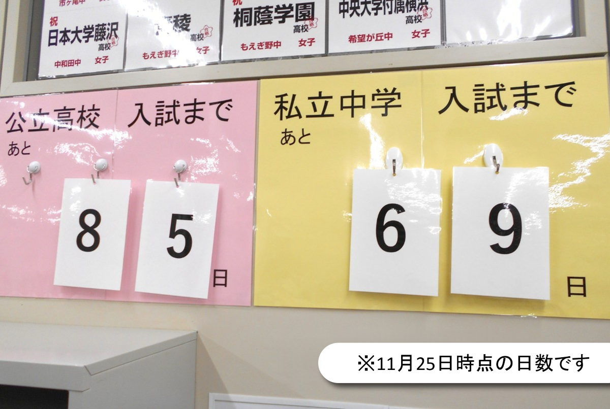 公立高校入試まではあと85日。私立中学入試まではあと69日となりました。