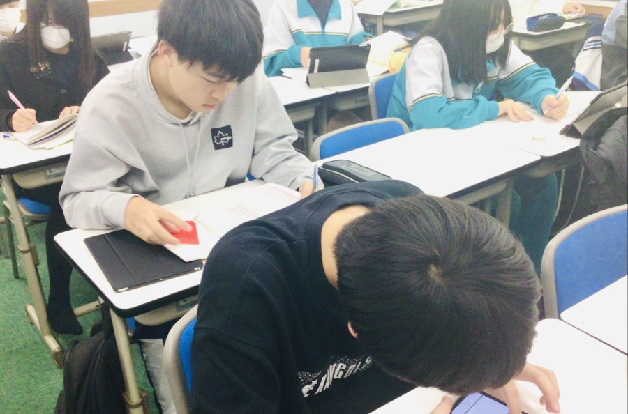入試だから、スマホはもちろん出せないし、教室に時計は置いてないし。