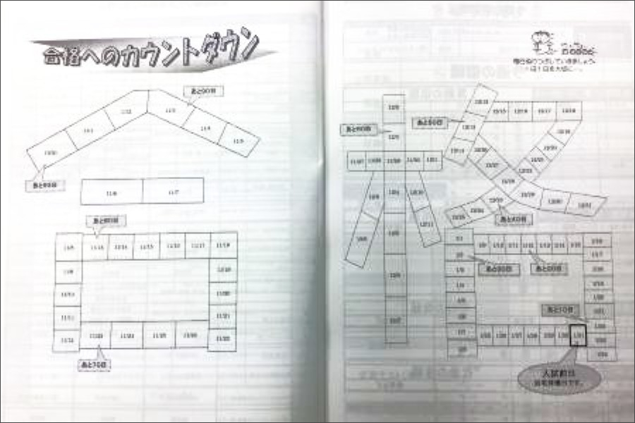 受験生には「これは、一生懸命受験生としてその日を頑張りぬいたと思ったら寝る前にしっかり塗ろう!」と伝えているカウントダウンです(まさか塗り忘れて1日で2日分まとめて塗るなんてことはないですよね!)。