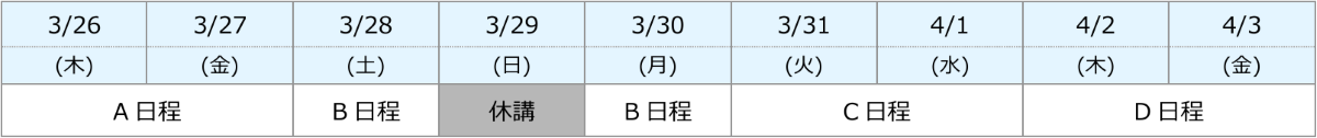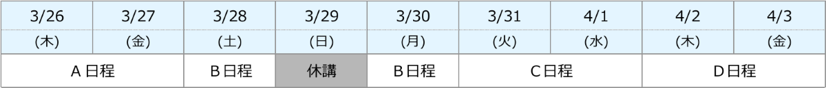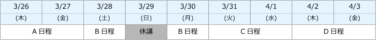 ※開校日程・時間は校舎によって異なりますので、校舎時間割でご確認ください。