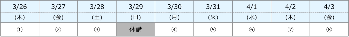 ※2 校舎により1 授業「90 分授業×2 日間」または「45 分授業×4 日間」のどちらかの開講となります。
