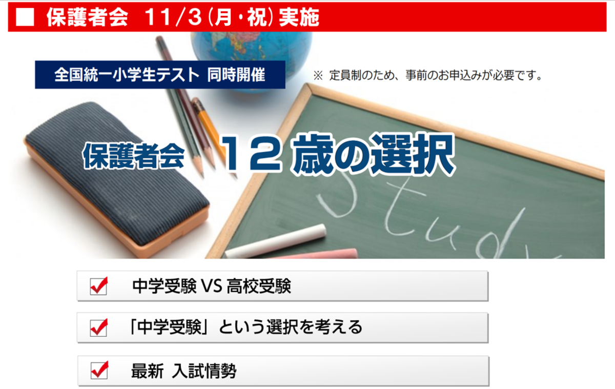 小1(2科目) 10:30~12:20満席小2(2科目) 10:30~12:20満席小3(2科目) 13:00~15:20満席小4(4科目) 13:00~16:20満席