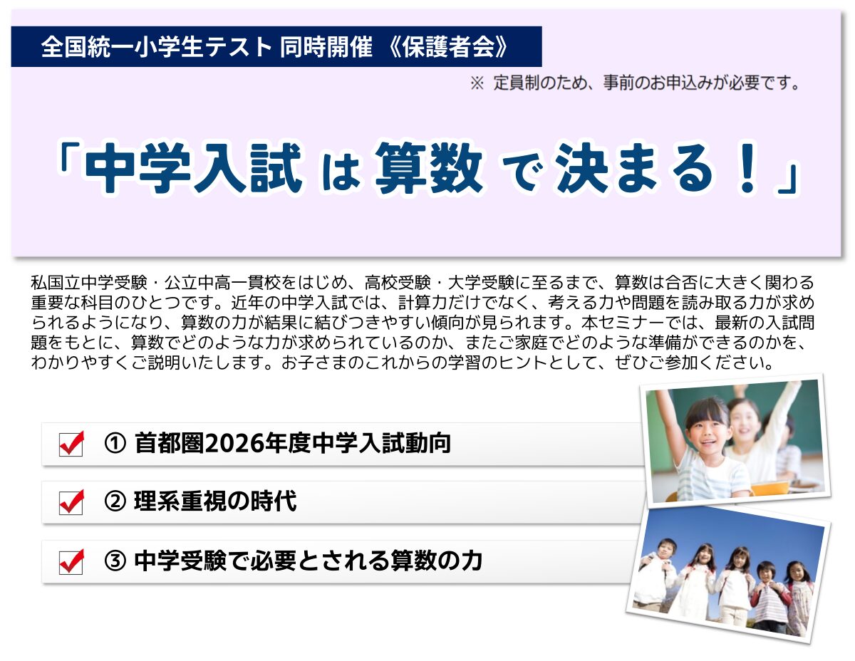 6/7(日)全国統一小学生テスト・保護者会