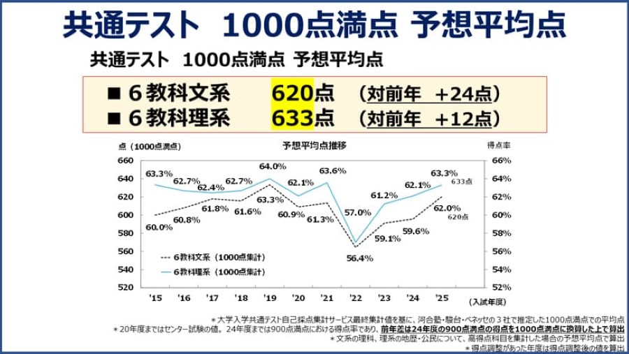 大手教育会社のベネッセが作成したデータ「参照先【2025年度共通テスト】文系・理系で平均点上昇、出願は「強気」傾向に?|ベネッセ教育情報」だが、過去10年一貫して、理系の方が文系よりも平均点が高いことが読み取れる。もちろん、科目の違いもあるが、全体の傾向として理系の方が「学力が高い」と読み取れるだろう。