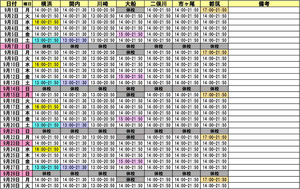 高等部 9月・10月開講スケジュール