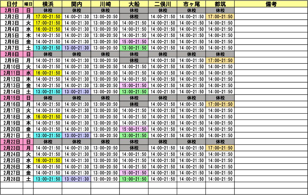 高等部 1月・2月開校スケジュール