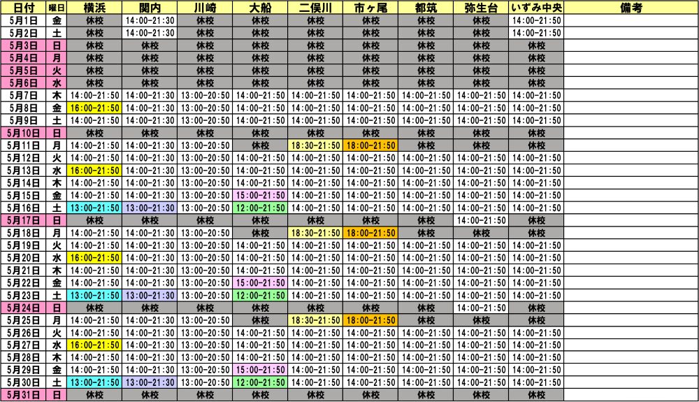 高校・高卒生 4月・5月開校スケジュール